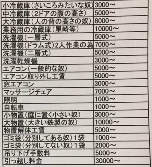 エアコンなど、取り外しなどがあるお品はお早めのご連絡が必要です。